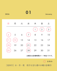 2026年1月の診療日のご案内です。